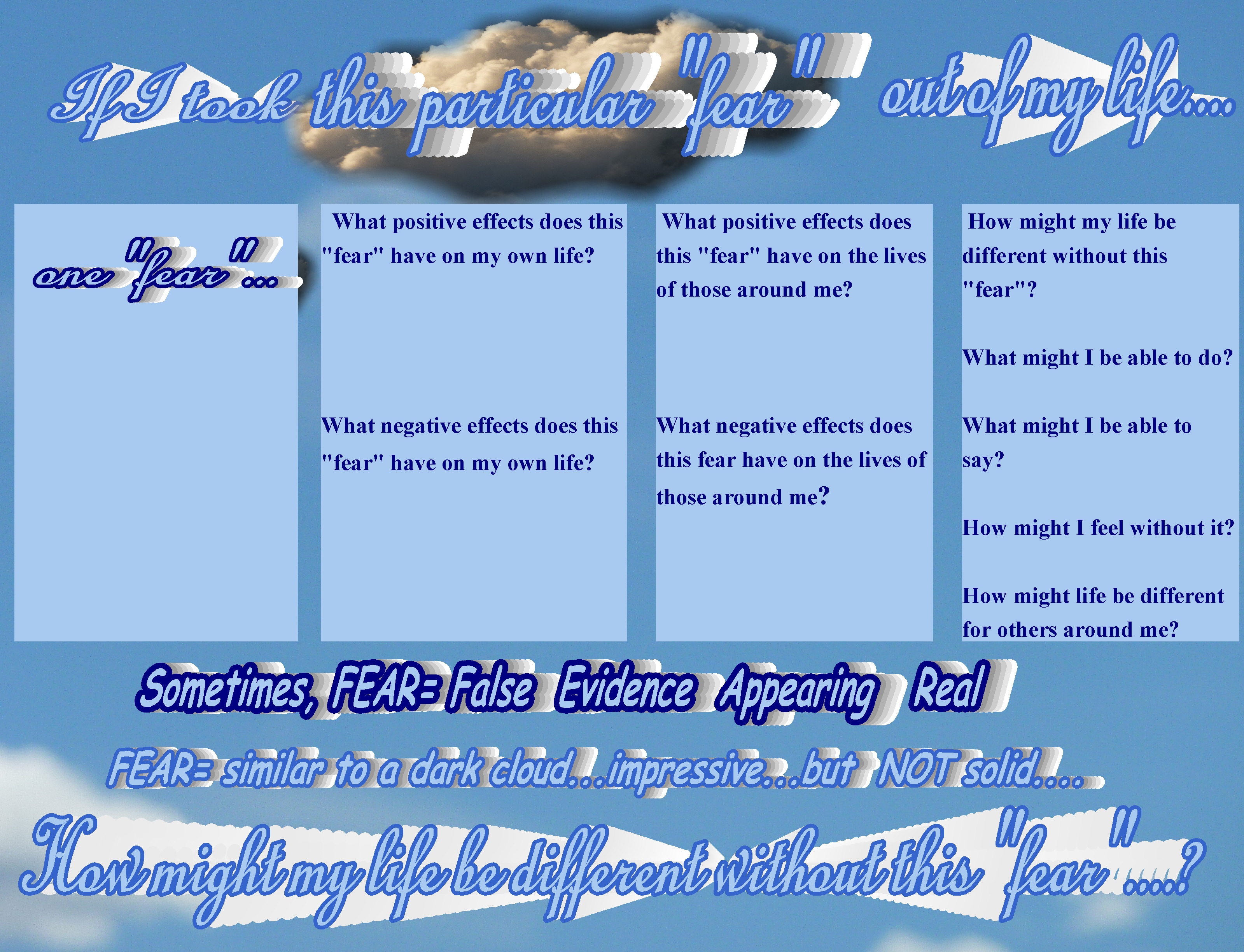 4. Wow – you really did an amazing job with this exercise! It’s so helpful to have it broken down into charts – it makes fear seem more manageable and less scary. Thank you!