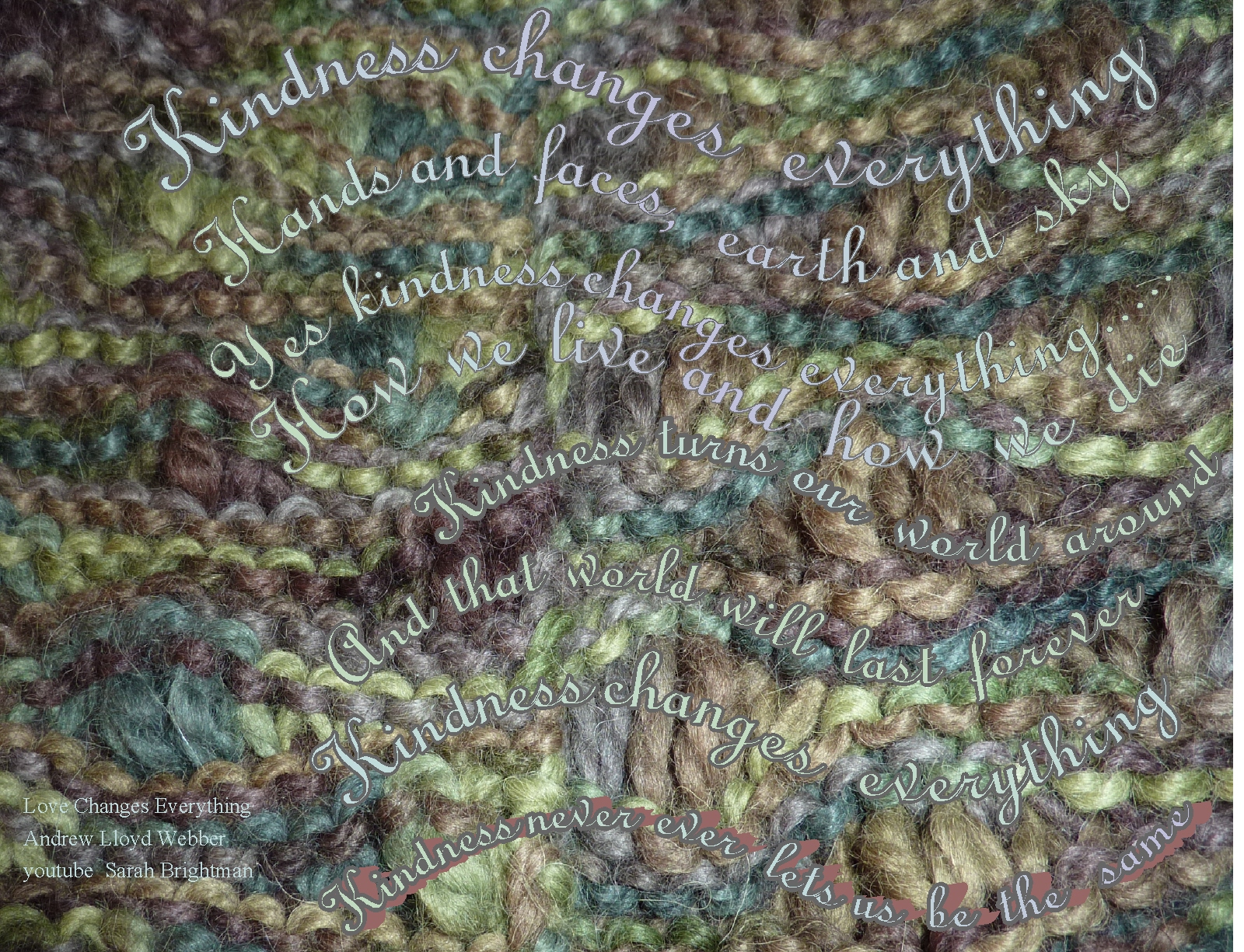 I love the idea of life being a scarf with all the stitches being added by different people. And as Joss says, our lives are so interwoven by all those with whom we come into contact during a long (hopefully) and busy life,. Thanks for these lovely images and may I please have that scarf?