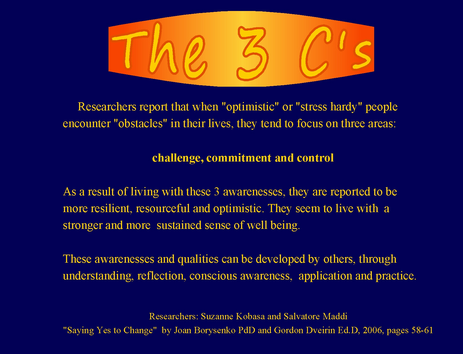 The 3 C’s ……challenge, commitment, control