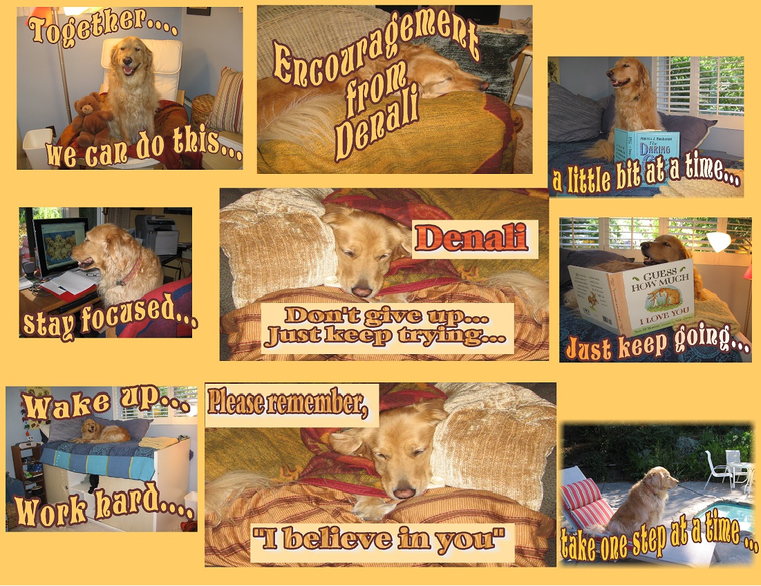 Last week, I posted some  “Denali cards” that I had made for the kids in my classroom… they loved and were inspired by these cards… and the advice continues to be as good for me as it was  for “the kids”… what a sweet dog, to put up with those poses…those cards offered the kids such courage and inspiration to just keep trying…and to realize how very, very special they were, too. What a lovely “teacher” she was….
